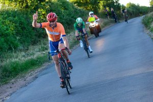 Earlier in the race the handicap system saw the last group of riders catch a gap of seven minutes over the leading group over the 35 miles race including two ascents of the finishing climb.